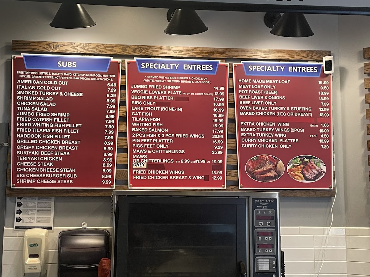 “ So Satisfied! Very clean atmosphere and the staff was friendly. My first time but definitely not my last. I brought the catfish platter with teriyaki green beans & cheesy broccoli...all delicious & worth the $14.68. Fish fresh, fried & seasoned well. I don't usually like takeout side items but there's was good. They have a large menu...that's a plus. Only issue was the cornbread as a part of the platter ( hard & dry) ”